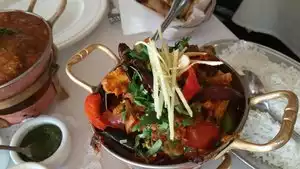We decided to order the complete dinner and the waiter said it would just be "a little of everything," but it was a major feast. Tandoori was delicious, all of the myriad things that appeared with the "complete dinner" were delicious but the fish (sea bass) was amazing. Service was very good.