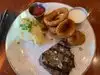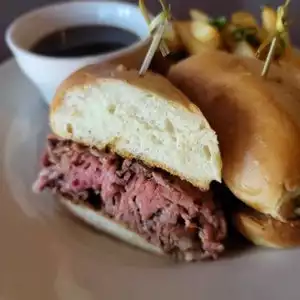 Good food, quiet atmosphere (conducive to conversation) and server was prompt, attentive, but not in your face. The Thurs special, a rib sandwich w/ bleu cheese/alioli on Kaiser roll was great, as were the onion rings. They were happy to split a sandwich for two and it was more than adequate.