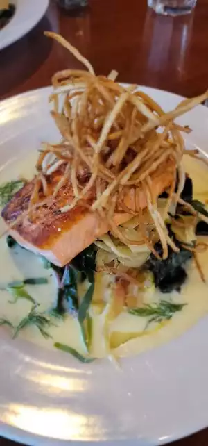Went early on a Friday night, great start by waiter Bill, my large(Jak's) filet was perfect balance of flavor and spice. My wife's salmon was THE best ever!!!! We have dined at this location a few times over the years (it's about a 20 minute drive) but after this meal, we really need to frequent more and more....We love the vibe, as it was football season, we could see the TV in the bar area and stayed up to date with the current game. Easily ignored if you want a romantic evening. We will be back sooner rather than later!! Thx