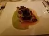 What a wonderful way to spend our final evening in New York City. Being a moderate foodie and being aware of the late James Beard's life as a food journalist, I was prepared for a nice event but I was not ready for the plethora of delectable flavours and beautiful presentations by Chef Steve "Nookie" Postal, Commonwealth Restaurant, Cambridge, MA. The event began at 7:00 sharp with an aperatif of a strawberry puree, gin and lime topped up by sparkling wine served with a number of appetizers, foods sourced from New England. The entire six course meal was sourced from New England. Each course was paired with an appropriate wine. We were seated at a table for six in an area that was once James Beard's bedroom. Our table-mates were very congenial and the atmosphere was light and jovial. The staff were very attentive throughout the evening. I loved every minute of the evening and look forward to coming again when I am next in New York.