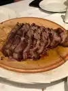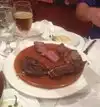 The ham was excellent very succulent and suave texture perfect flavor spot on. We had the buey 🐂 steak is absolutely outstanding brought to you rare on a 500 degree clay plate and you cook to temperature on your table mmm the crema Catalana was very good a great meal.