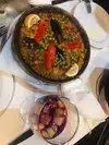 Dinner for four. Paella of course! We started with the pepper appetizer which we ordered a 2nd plate of - they were that damn good. Cod croquettes- hot and delicious. Creamy and crunchy too. Then the seafood paella came and we all dug in. The seafood was fresh and the rice fragrant. Shrimps were sweet and the clams and mussels plentiful. We tried to gobble it all up- but we had gorged on those appetizers. We bravely powered through and left only a smidgen of rice. The staff is attentive and the atmosphere a bit kooky with the matador art everywhere. We did not avail ourselves of the pork. The chef came out to check on us and thank us for choosing his establishment. It's a bit off the beaten path- do not let that stop you! There is valet parking - so stroll on in for a major meal.