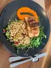 Server suggested the seafood curry rather than the scallops, so I obliged, but dish arrived with three shrimp, a few mussels, and no other fish. Some pieces of potato and grilled bread. Disappointing portion size for the price. Romaine salad was delicious. Wine pours are small.
