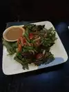Dined here for an early dinner, and just beat the crowd. It was definitely starting to get busy, given it is in a good location, not too far from the market. They have a large list of signature cocktails and sake, so I opted for a glass of the Suijin God of Water. It's a heavy pour so if you're by yourself, one glass should be good for lunch or dinner. They offer half and full bottles as well. We started off with standard edamame, which was what you'd expect. Next, the garlic short ribs were very tasty, with the grill char flavor, coupled with the garlic sauce that made it a tasty appetizer. In addition to the standard and some unique sushi and sashimi options, they have a ton of different house rolls to choose. They do have a "happy hour" and omakase special, so be prepared to make some tough decisions, given everything looks good on paper. We opted for the Mexican Ninja, Super Bad Boy, and Mr. Wonderful rolls, in addition to the sushi set, wild greens salad, and ride dish. The rolls came with a great presentation, and we really enjoyed the sauce on top, which complemented the fish nicely.