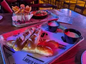Only had drinks. It was mid afternoon. Went upstairs as you had to eat to stay downstairs. Staff were awesome and friendly. Only complaint was if I am spending $21 American dollars for an espresso martini I would really like it in a martini glass. Not a plastic cup. Feedback only!