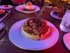 The very nice place set, very loud music to talk you have to shout. The worst was the food, although it is not of poor quality as far as the most elaborate dishes came cold , the boiling dish and the cold food . Not to mention the minuscule portion size less than an entrance. At the table they ordered beer and brought them the souvenir glass which is twice as expensive as the normal glass , it had to be asked to change it, for this the waiter took more than 10 minutes to appear again. Prices fairly in line with Las Vegas