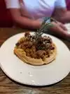Couldn’t decide where to eat and came across this venue on a walk along the strip. Had a wait a little while for a table so grabbed a drink at the bar. They have live music playing most of the time which is fine and doesn’t disturb you while eating. Good selection on the menu and portion sizes are good. We went with burger and fries, and chicken and waffle, however the sauce in the chicken was a bit too hot and spicy for my wife. For dessert we had the hot cookie skillet to share. More than enough for 2. Good food good venue good staff good service.