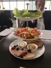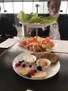 The elevator ride up is spectacular. The setting is superb. The view outside exciting. Our servers were charming and attentive. The menu was a little disappointing. Not a lot of choices. I settled on a pear endive salad with salmon; my guest had the salmon entree and the other guest had the endive saiad without the salmon. It was good; not great. The bread was good, not great. we ordered one dessert. Very pretty in composition but again, not so great. Plus only three choices for dessert and this is the week between Christmas and New Years....so live it up, a little.