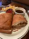 Prime rib French dip was the bomb. Great location too! Staff was friendly and contact less menu scan and great beers. They had a nice outdoor set up for dining as well