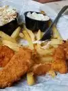 Shrimp was outstanding. However fries were not crisp, coleslaw had been sitting around.. brown & not fresh. Service: had to flag someone down for more water.