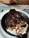 I forgot the name of the dish but when it arrived the fries were a bt cold, the shrimp was salty, service was ok since they rapidly swap it for another dish, the place is a bit crowded but ok.