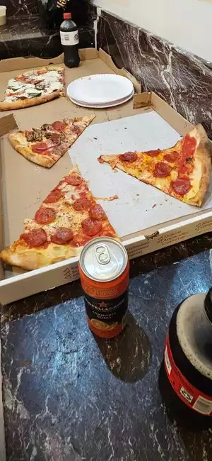 Very good pizza!!! We started with the taste of the dough that was very good and the size is quite large and they have a great variety of ingredients where you can choose in our case we ordered the NY, margarita and pepperoni were excellent and the service is very fast where you pay little wait and you are delivered your order. I recommend it to 100 because if you want to enjoy a good pizza at the pass this is the one and also have delivery. They have a few tables where you can sit or also eat standing.