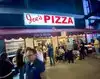 I came here after a show and while it was late at night there was a long line out the door, even though it was a very cold night. Once you order, it only takes a few minutes to heat up the slice(s) you choose. There is a small seating/standing area to eat. The pizza was fantastic.