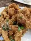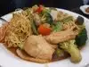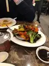 The evening we went it was packed with people outside. You get a number and there are chairs outside to sit on. The staff efficiently get people in and at a table, chances are you will be sitting with strangers. Strike-up a conversation, we did with a nice gent from Texas. Back to the food, we had Prawns in citrus and plum sauce shrimp and chicken. The Prawns were good but the sauce a bit bland. The plum sauce was better. The shrimp, prawns and chicken were all excellent - cooked just right.