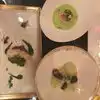 There were several things that truly disappointed. First, I told them I am lactose intolerant and they gave me an amusé bouche with yogurt and told me to eat around it or just try it, as it was Greek yogurt. In another dish, there was cheese and he told me “it’s just a little.” Are you kidding?! Every restaurant I have ever gone to has accommodated, Michelin star or not. I thought the service was terrible. Our water glasses were hardly ever filled. We had to keep asking. My husband and another in our party got the chicken, which came with chanterelles and garlic. My husband got no chanterelles and the other person got no garlic. We could not believe this. The server did not ensure each person got every part of the dish. My turbot was tough. In general, none of the dishes were creative in any sense. The only amazing things were the breads and sweets at the end of the meal. I have been to many Michelin star restaurants, including 3 star restaurants. This certainly did not rate. I’ve been to restaurants with no stars that were better. Over priced for mediocre food and bad service.