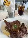 I had the bone in rib-eye which was great and we loved the fries which was hot and crispy. my wife had the fried calamari n fries which was also great . My daughter enjoyed her cheese burger w fries our server John was very nice and on time with everything we needed