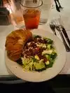 Party of 3 shared 3 items for an expensive lunch. Soup & salad —$13+1 crab soup—the shew-crab soup was very tasty, pretty salty tho. The small salad was also quite tasty, excellent dressing. The reuben sandwich—$20– was large, flavorful. Accompaning side selected was creamed spinach —very nice. Separate order of salad was split in kitchen (as was the reuben), Service was v. Good, however place was very noisy.