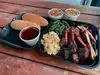 My son and I love bbq. Raced from the Grand Canyon to catch them before they closed. We had burnt ends, tri-tip, hot links, collard greens, mac & cheese, followed with peach cobbler. Absolutely delicious. We love bbq and struggle to find good bbq, this place does it right. The feel is like being at a family bbq with family you actually like. The staff are incredibly friendly, funny and everyone engages with you. We were treated with the red carpet as if we weren’t holding them up from closing for the day lol. If I ever come back to Vegas this will forever be on my stop list. Get off the strip and enjoy some great food, huge portions and family treatment.