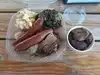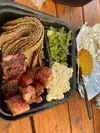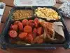 I ordered brisket, ribs, sausage, potato salad and beans. Brisket was undercooked and stiff as a board, and sausage was overdone and dry. Beans were straight from the can. Potato salad is store bought. Just plain nasty. I wish I didn’t have to give a star.