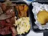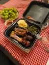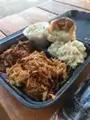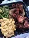The burnt Ends are soooo tender. Love them without the sauce. Has Mac and cheese which was really good. Greens, yams, baked beans, corn bread all delightful. Peach cobbler was amazing. Go hungry. Lots of food