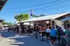 I met a friend here for barbeque. It was lovely weather, which was perfect as the seating was outdoors. We ordered off the menu and paid and went right into the serving line where we handed over our paid tickets for food. Then, we picked our waters out of a big feeding trough, found a table and enjoyed! Reasonably priced. Casual seating would accommodate 2 or twenty (lots of picnic tables. It wasn't busy when we arrived, but the crowd definitely picked up as the afternoon progressed. Not sure how long the wait was; we moved right through earlier. Definitely good food at reasonable prices if you don't mind picking up your own food, beverage and seating yourself.