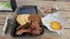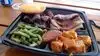 Noticed that this is the #2 ranked spot for quick bites in Vegas. Very impressive! John Mull's is sort of a business within a business. It's actually a meat market/butcher shop that also happens to serve cooked food as well, primarily BBQ. There's no place at all to eat inside the very small open area. Two lines are immediately formed - one to the right as you walk in if you're just here for some meat, the longer line forms to the left to order cooked food that you can purchase, and which is served cafeteria style. You then take your meal and whatever drink you purchase and enjoy in a huge outdoor sitting area - lots of picnic tables, all under a canopy. And it does get busy, lemme tell ya. Altho there is a lot of raving going on about great their food is, I think it's more along the lines of good, rather than great. BUT.....boy do you get your money's worth, that's for sure. I had the burnt ends dinner, which comes with two sides. The Mrs had a pulled pork sammy - think that came with just one side. But nevertheless, these meals pack a wallop, mine in particular. For less than $15, they give you a whole bunch of burnt end pieces, enough to stretch into two meals, which is what I did. I chose the mac-n-cheese and the chili for my two sides. Both were ok, nothing to write home about. The chili in particular was a bit watery. The sammy that the Mrs had was generously filled with a lot of pulled pork. You get a choice of BBQ sauce on the side, one is spicy the other is regular. We got one of each to try them both. The spicy is just that...SPICY, but tasty. I've had better BBQ in a number of places, but this was still good and the volume was way above average. All in all, a really good value for the money.
