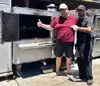 Came here for lunch with friends. Took about 45 minutes to get through 2 lines. One to pay and one to get your food. They did have cold bottled water and they were serving samples of barbecue beef sandwiches. Typical barbecue items on the menu and sides. Meals were $10-15. Meals came with 2 sides and a muffin. Ribs were decent. 1/2 chicken was ok. Shredded chicken was too saucy and shredded pork was ok. Yams and coleslaw were good. The potato salad and Mac and cheese were not as good. Collards were good. People work hard here and must be a bear in the summer heat as all outdoors.