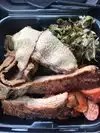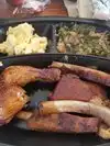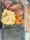 Another reviewer called the ordering and service process “comically inefficient” - that’s being generous. We got a 3 meat combo and a 2 meat combo. Props where they’re due: what they lack in quality they make up for in quantity - they do deliver a ton of meat. Alas, were it worth eating. The sliced brisket is served from a liquid-filled pan on the steam table and is barkless and is better classified as roast beef. The rib tips were a half percent of dryness away from being jerky. The pork ribs were also dry. The sausage was good, but not good enough to save the day. We got a portion of burnt ends - they could have save the meal had they not been cold. Mac & cheese was a mushy mess. The green beans and the mustard greens were good. I didn’t receive the macaroni salad I ordered. Agree with another reviewer that the burnt ends and maybe the sausage are the only things that might have seen the inside of the smoker. Stay away.
