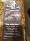SATURDAY FOOD REVIEW...JOHN MULL'S ROADKILL GRILL...5/10/25 Scott and I drove out to North Las Vegas, as a friend of ours told me that if you like BBQ, you HAVE to try this place, John Mull's Roadkill Grill, located at 3730 Thom Blvd., as they supposedly had Texas style BBQ. We got there early, and were the first in line. They technically open at 11AM, and there was a lot of bustling going on preparing for the lunch rush. I spoke with a nice man who made the soups, and he gave us a soup sample. They get pretty busy, and by the time we put our order in, the line had grown significantly, which is usually a good sign. I ordered their 2 Meat Combo of Brisket (no sauce) and Hot Links (no sauce), with macaroni and cheese and collared greens (no bread), plus a side order of their Brisket Burnt Ends. I also wanted the fatty brisket, but the cashier said that you don't get a choice, since it's pre-sliced, and you get what you get. Scott ordered their Beef Rib, with macaroni and cheese and macaroni salad. The cashier said it was 20 minutes until the rib was ready, and she took down his phone number to let him know when it was ready. You would think that they would be less disorganized, and have all of the food ready at the same time. Here's where everything went completely south. I went and sat down, and Scott got my food for me, plus his side dishes. He brought it all to the table, with an extra plate, as we were going to split the meats. I divided it up, and had to send Scott back up to get the burnt ends, which they forgot to add. The collared greens were overcooked, and the macaroni and cheese was dry and so-so tasting. For a line of lots of people, you'd think that the food was fantastic, but it was BEYOND DRIED OUT!!! The brisket had a greyish color to it, and even though it had a smoke ring around it, it had NO FLAVOR WHATSOEVER!!! The hot links were barely spicy hot, the burnt ends were also flavorless. I couldn't eat it, and threw it out!!! And Scott, who eats just about everything, couldn’t eat it!!! I went up to the nice soup man and told him about it, which he was shocked to hear! He told me that they slice all of the brisket, then bag it all, and then reheat it in boiling water in the bag (really???). He got me a free pork rib and some sauced cut up pieces of the hot links to see if that was better, but it wasn't. The sauce masked the zero flavored links, but the sauce had a strong taste of vinegar, which I totally did NOT like!! I told Scott to cancel his order, and he came back to the table and said it was canceled (????), but the cashier didn't give him a refund. So, I took the receipt, and talked to the manager, and she thankfully gave me a full refund!!! And as a side note, an hour AFTER we left, we get a call that his rib was ready. I wouldn't recommend eating at this place, despite the great reviews that it has gotten. I'm thinking that those fans of the place haven't tried real Texas brisket, or they love it because the sauce masks the lack of flavor. Either way, I won't be going back. My rating: 1