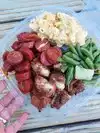 We heard the mac n cheese was a good choice - it was. The portions were huge to us and we had plenty of leftovers for later.Not fancy, but worth the stop. Nice people and perfect picnic setting outside under a large canopy. Thanks