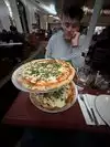 Our group of 8 who absolutely love pizza stood in the line which was out the door on the street. We waited 50 mins to get a table as you cannot book. Inside the foyer/bar area people were shoulder to shoulder waiting for a table. While waiting we watched staff eating in the restaurant area. The building is impressive, however, if you look up the air vents are disgusting and so are the toilets. This pizza and pasta was nice but definitely not worth for the wait. Would not rush back.