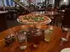 Having been before an advance party of 2 of us went to get a buzzer before the rest of our party joined us and were able to get a beer quickly and had room to chat with other patrons waiting for a table. The place was rammed but we only had to wait 40 minutes for a table by which time the other 6 had joined us. The menu was varied and the servers recommended the smaller of the pizzas for us, as we wanted 4 to share and it was still massive. They were huge with lots of toppings and very tasty. The others were very happy with their meals