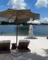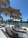 My friend and I chose to spend the last day of our long weekend trip at Joia Beach. Overall, I really enjoyed it. The day bed was comfortable, spacious, and reasonably priced ($50 for the day). We went on a Monday, so the minimum food spend was only $25pp (same on Wednesdays and Thursdays). I ordered an iced latte to start, and then falafel balls and a ranch water for lunch. Everything was yummy, if slightly overpriced. The minimum food spend Friday-Sunday is $100pp, and I wasn't so impressed that I would come back and eat and drink enough to hit that. Our waitress was lovely and checked up on us enough without being overbearing. The water was so nice and refreshing, though the area roped off in the water is more for sitting/floating than swimming. The music was not too loud from our daybeds, which I really liked. My only real notes pertain to the experience we had arriving with luggage (we came from our hotel in Miami Beach). I would guess a not insignificant portion of their guests are tourists who may be bringing luggage they'd like to store during their visit. Understandably, I don't think they have this type of guest in mind often, but it would be a nice touch to offer a golf cart or some kind of concierge to bring luggage from the entrance to a secure space for the day. We had to roll our luggage down the long entrance walk. When we arrived at the hostess stand and mentioned we needed our luggage held, the hostess was initially confused. We had called ahead to confirm whether they could hold our luggage, and were told they could do so, so it seemed that whoever took our call did not make a note of our request in their system. No big deal -- she did oblige to holding our luggage behind the outdoor reception desk, but we assumed they would have at least a small, dedicated and secure area for holding luggage, if not also a simple system for tagging bags. Ultimately, there was a spill near the desk, so she quickly pivoted to offering to hold our luggage in their office. I appreciated that. Later, I left a bit earlier than my friend as we had different flights. When they retrieved my luggage, they also brought hers out and insisted it stay by the reception desk, instead of just leaving it in the office until she was ready to leave. Again, not a big deal on its own, but taken with the other little blips, it made for a bit of friction. I have used day passes at similar venues in other cities and had a much smoother experience with storing luggage. Finally -- and it's possible I missed it -- I would suggest they build out a more robust outdoor shower space. The only one I could find was a single spout placed in a very open part of the venue. It would have been nice to clean up a bit more before my flight (albeit a short one to New York, so it was not the end of the world). Overall, I had a good experience, and I think with more attention to client experience for, perhaps, nonstandard guests, it would be phenomenal. I would definitely come back if I find myself in Miami on a weekday again.