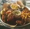 Went here on a Sunday morning and had a 2 person chicken and waffles platter....warning. It is HUGE!!! You can probably finish it for 3-4 people. I have to admit we did pretty decent damage with a petite gal and a big guy! Plus 2 Bloody Caesars! Yes. Get a Bloody Caesar! Delicious Bloody Mary while waiting for your meal! So back to this AMAZING platter. The fried chicken were the highlight with a honey glaze which is to die for!! WAY too many chicken wings on there but delicious none the less. Biscuits and decadent gravy with bacon pieces in there. Waffles. Eggs. French fries--yes fries for breakfast! Then all the sauces you can imagine....just be prepared and go with a healthy appetite!