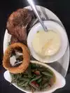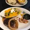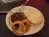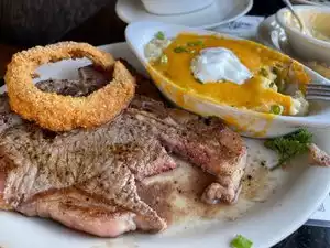 This is my second time here, giving it another chance. Over priced food. T-bone steak ⭐️ ⭐️ lemon flavored (had better steaks at Cracker Barrel and Longhorn steakhouse) so disappointed Skinless loaded potatoes ⭐️ ⭐️ ⭐️ Liver and onion ⭐️ ⭐️⭐️⭐️⭐️ (soft) Onion rings ⭐️ Queso and sausage ⭐️⭐️⭐️ Onion rings (disappointed