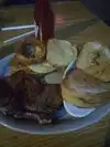 Had T-bone steak it was great great salad and mushroom and corn on cob this was great food great service staff was outstanding