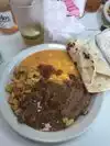 Had the Con Queso breakfast plate of two eggs [done as requested] plus a lot more food... beef, rice, beans, tortillas. All of it really good. Service fine. Place can get busy - because its good.