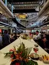 We went several times there are many meal options in different spaces, the excessively loud music shatters your ears and you can barely talk. We had problems with our cards,,, they don't accept cash if it's not accurate, it was an inconvenience. Too warm temperature ramen just normal Lots of young and pretty Latino vibe like in all of Miami. In the center very central place close to our hotel