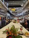 Place is super crowded, my daughter is on wheelchair the place is not ADA compliant at all! Main elevator was out so we used the freight elevator and got stuck had to call rescue to get us. Most restaurants are out of many menu items. Place is very difficult to walk, lines are long they should limit capacity is extremely dangerous in case of an emergency/fire.
