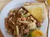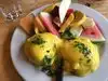 My wife and I stopped here for lunch after I told her that earlier in my stay I had breakfast here and had crab eggs Benedict which were excellent. She decided to have crab eggs Benedict for lunch substituting fruit for fries. The eggs Benedict are very good and come in a number of different varieties such as salmon. I had a cashew stir fry which I did not think was as good of the crab eggs Benedict. The fruit included strawberries, melon, pineapple, orange and provided and excellent balance to the heavier fare of eggs Benedict.