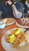 Fantastic neighborhood gem with great service and food. A unique menu offering local favorites as well as traditional breakfast items. The atmosphere was eclectic and comfortable. Great place for a quiet conversation or to reflect on the day to come. Highly recommended and reasonably priced.
