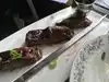 What a diverse and delicious dinner -- we had seen an interview with Kachka's owner, Bonnie, on PBS that made us want to eat here when we visited Portland. We knew nothing of the food, and we had not tasted vodkas before, beyond the occasional dirty martini. The wait staff was extremely helpful explaining cold and hot zuzski (small plates) and helping us gauge how much food to order (e.g., the full Russian experience is for parties of 4-6 or more, not for one couple). The infused vodkas were lip-smacking good -- our favorites were tarragon, horseradish, caraway, and Mt. Hood strawberry, in that order. The latter is only available for a short time each year. The pastrami-smoked trout was delicious, as was the wild Atlantic salmon roe, sumac-smoked beet salad, and the steak kabobs. We found the mixed-meat dumplings too rich and would not order those again. But all this food was more than enough for two people to share. Each dish was from a different part of the world -- and we tasted many new flavors that we hope to encounter again!