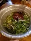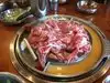 When seated at a table you may think the meal has already begun. A half-dozen dishes of salad, noodles with sauce, onions floating in a brown sauce (wasabi) on the edge, kimchee, and a few others. We ordered the combo - choice of 4 meats. The server set them all down on the edge of the table in their raw state. It was great to see the quality and freshness of the food before being cooked. The server turned on the gas and cooked brisket in the center of our table. When we finished he cooked the ribs, and finally the ribeye. Dipping sauces and other spices made this meal very special.