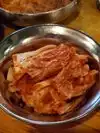 The Skinny- Parking: tiny lot behind 6th street Decor: concrete floor, smoky air Restroom: somewhat clean single Service: abrupt Food: different but tasty Coke Factor: can, plastic glass Price: $$$ I have been going to Soot Bull Jeep so long that I have gotten used to their style of Korean food. Since I have not been to Korea, who knows what is the most traditional. Today we tried KangHoDong Baek Jeong and there was a line at 1220p. It only took 20 min to get a table and the place is smoky so don't wear anything you cherish. The table is already set with goodies: scallion pancake - yummy cold soup - too sour for me salad - excellent dressing cooked kabocha pumpkin - tasty topping but slightly bland pumpkin bean sprouts- covered in hot sauce, very hot and spicy kimchee- hot marinated short rib- sooooooooo goooooooood spicy pork - not too spicy, very good egg custardy app - tasted just like scrambled eggs corn cheese app- not appealing rice- standard sticky Overall I was pleased but it is a bit pricey however that doesn't deter me from bringing others to share. It was 90% Korean customers by the way!