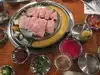 Dinner with a large group and the BBQ was stellar. Beef was thick and juicy and the sides kept coming and were delicious. Service is also excellent here, they always make you feel at home. Everything was great, but the ventilation in this restaurant is really a problem. There was so much oily smoke blowing in our guest's direction that they were visibly uncomfortable during the first few minutes of cooking the beef. This is the only reason why 5 stars were not given. Otherwise, a great place to satisfy your hunger in a fun and loud place!