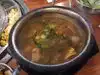 So this was different from most Korean bbq places - We had ribeye plus two other meats and a soybean tofu stew. They cook at the table with eggs and cheesy corn (yes, odd isn't it?). It was good but I would opt for a place with the standard version instead. It wasn't cheap, something like $25 per person for lunch. There were long lines the first time we tried to eat there so we went back the next day and only had to wait 15 minutes.
