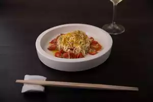 As regulars and fans of Bar Masa, my family and I went to lunch at Kappo Masa with much anticipation. It is in the basement of the Gagosian gallery on Madison Avenue & between 76th & 77th -- a very nice basement which we felt was more spacious, more serene and prettier than Bar Masa. Much of the menu was familiar with the exception of some interesting additions to Kappo. Our lunch started with a complimentary tofu, seaweed miso soup -- a gently flavored, balanced hot soup. One of the best miso soup I have even had. Pasta made from seafood (i.e. fish or shrimp): we tried fish pasta with bottarga --- flavorful, fresh and the right level of salt, and no fishy taste at all. Beef fried rice we thought was slightly better than at Bar Masa. The wasabi watercress salad here was prepared a little differently from Bar Masa -- less spicy perhaps due to the addition of beets -- but still very good and our favorite salad at both restaurants. We also had sukiyaki which was done just right -- flavorful, not too salty, very tender beef, and the soup/sauce remained temperature hot. The shishito peppers were much larger than usual but still grilled and salted to perfection. The ingredients in all our dishes were superior and fresh. We plan to return for dinner. This will be a favorite lunch place for me: very good food, have "light fare" option, excellent service and among the quieter/more peaceful places at lunchtime.
