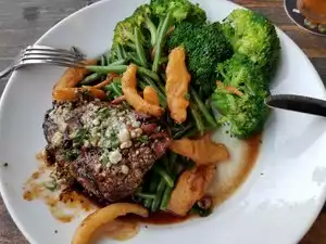 Went with 4 persons, we were all pleased with our meal and beer's, can't recall what we had but it was a good dining experience with the outdoor pond and secluded location in a commercial park, would eat there again. Could use better signage for newcomers to locate.