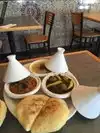 Cute little cafe. Beware, no air conditioning. Food and service were excellent. We ordered the chicken tangine and Murguez lamb sausage tangine. Both were fantastic. The chicken tangine was more refreshing, while the Murguez lamb sausage tangine was spicy and heavier. The sauces matched the meats perfectly. The final Halwa d’Tmar was a pleasant treat, dry and powdery on the outside, moist with the date filling in the inside. Very pleasant staff.