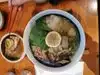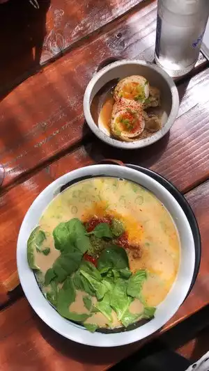 Heavy but delicious chicken and pork broth. Great happy hour prices that begin at 1130am. Cucumber salad is refreshing with the ramen. Friendly staff, quick service. A great price, friendly casual lunch/dinner option. Would return if I lived in Portland. Gluten free and vegan options available.